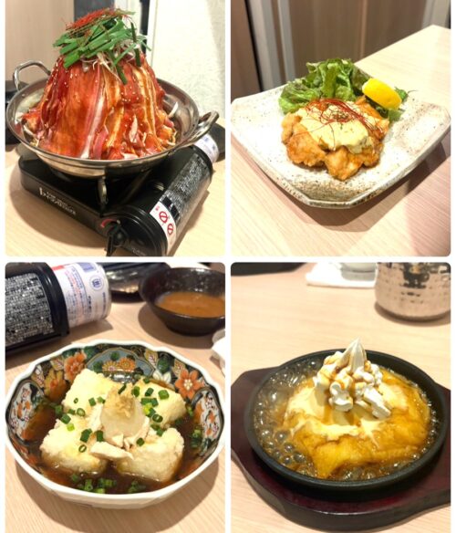 左上:牛タントロ肉鍋・右上:宮崎名物 チキン南蛮