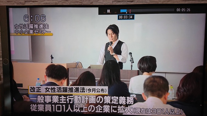 令和元年6月25日、横浜市主催の「女性活躍推進事業キックオフイベント」が開催され、横浜市からの依頼で、横浜中央経理の顧問先である株式会社オースズの鈴木社長が女性活躍推進における取り組みのきっかけや取り組みにより変化したことなどを参加者に向けて講演し、この模様がテレビ神奈川でも取り上げられました。
